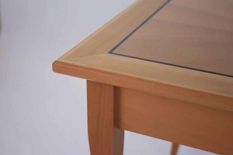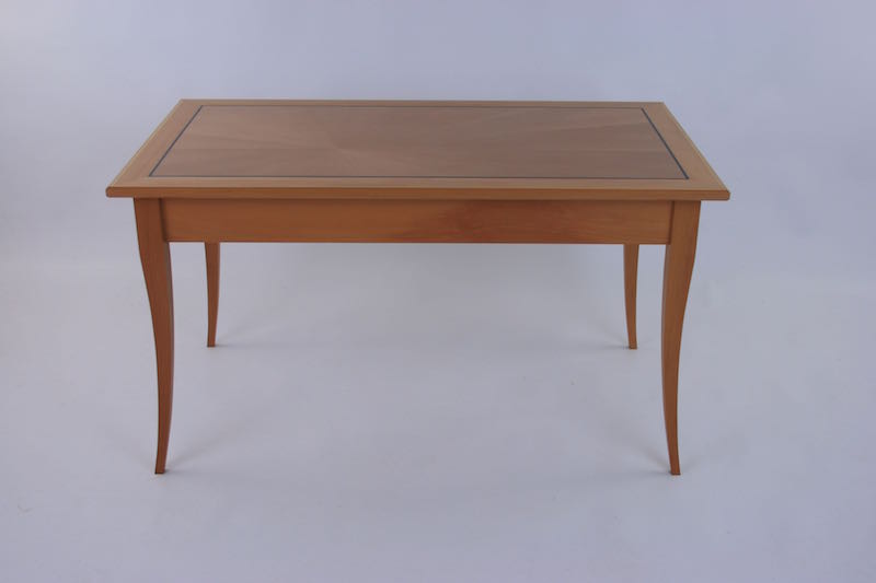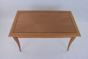 A small lightweight coffee table with Sunburst Pear veneer pattern and highlight lines in black and white The underframe is solid Pear Click on the photos for a larger image